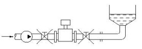 4.當向下管道長度超過5m時,在傳感器后安裝一個虹吸管或一個放氣閥。以避免低壓而可能造成的對測量管襯里的破壞。保證滿管,減少含氣量。