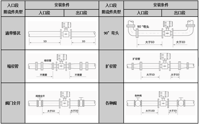 2、注意流量計前后直管段長度。