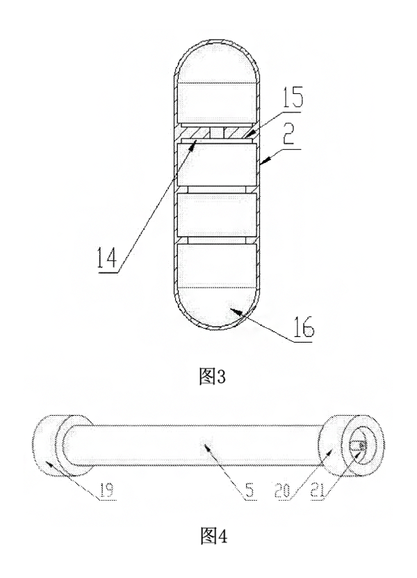 磁浮球呈膠囊狀且內部設有空腔,磁浮球一端開口,磁浮球的空腔內安裝有兩個加強支撐環,兩加強支撐環之間安裝有環形**強磁鋼塊,磁浮球開口端焊接有封堵頭,磁浮球質量較輕,可以在液位計主體的磁浮球通道中浮起,兩個加強支撐環一方面可以保證磁浮球不會在受到較大壓力時發生形變,另方面可以固定環形**強磁鋼塊,環形**強磁鋼塊增大了磁浮球與磁翻板的磁耦合強度,使環形**強磁鋼塊在磁浮球內更加穩定,焊接的封堵頭有效保證磁浮球內部不會進入液體,增長了使用壽命。