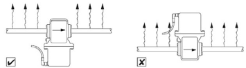 (1)在過(guò)熱的條件中使用時(shí)(比如在線清洗和在線消毒),強(qiáng)烈要求變送器裝在下面,這樣可以降低變送器部分過(guò)熱的風(fēng)險(xiǎn),如圖8。