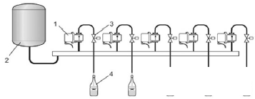 圖6 流量計(jì)和閥門的安裝位置示意圖(1代表灌裝流量計(jì))