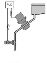 在灌裝系統(tǒng)中用到快速切斷閥(定量閥)來(lái)控制灌裝的啟停。快速切斷閥的控制原理:當(dāng)電磁閥接收到PLC的輸出信號(hào)(由PLC采集灌裝流量計(jì)的脈沖信號(hào)后處理的輸出信號(hào))時(shí)開始動(dòng)作,通過(guò)執(zhí)行機(jī)構(gòu)帶動(dòng)閥桿和閥芯向上運(yùn)動(dòng),閥芯和閥座分開,流體通過(guò)閥座進(jìn)入灌裝管道,開始灌裝,當(dāng)電磁閥接收到PLC輸出信號(hào)關(guān)閉閥門時(shí),閥桿向下運(yùn)動(dòng),帶動(dòng)閥芯向下運(yùn)動(dòng),使閥芯和閥座接觸,從而切斷流體達(dá)到結(jié)束灌裝。本應(yīng)用中控制閥的閥桿在管道中,流體從上向下流經(jīng)整個(gè)閥體,閥桿的動(dòng)作行程分兩級(jí),對(duì)應(yīng)于小流量和較大流量。
