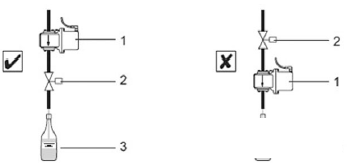 4.2.2 安裝位置。安裝在閥門附近,灌裝流量計(jì)不能安裝在控制閥的下游(圖6),如果裝在控制閥的下游,在一個(gè)灌裝周期結(jié)束后,傳感器的測(cè)量管道完全排空,這樣會(huì)嚴(yán)重影響下個(gè)周期的測(cè)量。