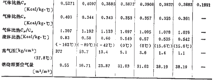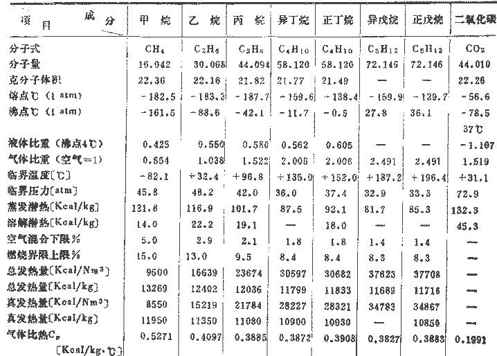 表2 液化天然氣成分物質的物理常數