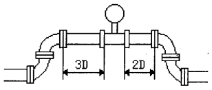 渦街流量計由于其獨特的性能,一直受到人們重視,并己到了**的應用,但仍有兩個方面的問題困擾著人們,一是由于儀表上游管道阻流件的干擾,流場發生畸變,影響旋渦正常撥離。為了克服流場擾動,儀表前需要配裝較長直管道(一般為15~40倍的工藝管內徑的長度),而在實際現場是很難滿足的。二是,渦街流量計主要特點之一是量程寬,一般在10:1左右,應該說這樣寬的測量范圍應屬比較優良的性能,但在實際工業應用中,大流量遠低于儀表的上限值,小流量又往往會低于儀表的下限值,一些儀表經常工作在下限流量附近,造成儀表的計量準確度下降,這時信號較弱,儀表的抗干擾能力也下降。為了測量小流量,人們往往采用內腔形狀為園臺的傳統變徑管,經過縮徑提高測量處的流速。使渦街流量計工作在正常流速范圍內,但這種變徑方式,結構尺寸大(一般長度為工藝管內徑的3~5倍),同時,由于流體流經變徑管,在變徑處產生大量旋轉流團,增大局部阻力損失,也使流場發生畸變。所以必須在變徑管與儀表之間加裝大于15倍工藝管內徑長度的直管道進行整流,且增加了沿程阻力損失(如圖1所示),這種方法增加施工成本,也給加工、安裝帶來不便。