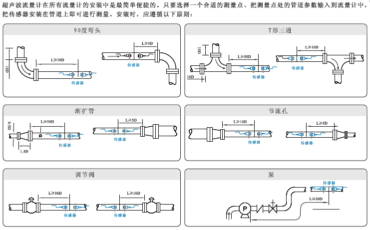 RZ-1158C超聲波流量計在所有流量計的安裝中是簡單方便的,我們中需要選擇一個恰當?shù)臏y量點,通過將測量點的管道參數(shù)輸入流量計測量系統(tǒng)中,便可以方便地實現(xiàn)傳感器在管道上的流量測量。